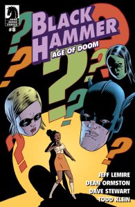All in all, not bad. Makes me want to try it again sometime. The threat of walking into a comic series cold was balanced by enough talent, and for the exception of Black Hammer, the ability to read a copy of something and get a warm fuzzy feeling while experiencing comics again, enjoying the random issues.